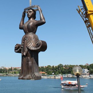 Бронзовата скулптура е адаптация на кариетидните женски фигури от тракийската гробница при с. Свещари, III век преди Христа. Тя е висока 5 и половина метра и тежи около 3 тона, монтирарана е на бетонен пиедестал и така се намира на над 16 метра от морското равнище. Тя е дарение от светаовно признатия скулптор Павел Койчев
